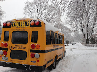 Premièrement le nombre de jours de cours est différent : 180 ici vs. 150 en France (au passage les 180 jours sont une cible pour le ministre français) et son découpage sur l'année aussi : les cours débutent fin août (le 28 en 2012 par exemple) et se terminent juste avant l'été au moment de la fête du Québec du 21 juin. Ce qui laisse donc 2 mois de vacances pour cette période. Et le reste de l'année ? 2 semaines à Noël, et une semaine en mars (la fameuse semaine de relâche dont on vous parlait ici). A cela s'ajoutent, dissiminés tout au long de l'année, des journées pédagogiques pour que les enseignants puissent continuer à se former. Une vingtaine par année scolaire environ (soit à peu près 2 par mois donc). Pendant ces journées et si les parents le souhaitent, les enfants peuvent rester à l'école au Service de Garde qui organise des activités ludiques et parfois même des sorties en dehors de l'école (musée, glissades dans la neige, etc.). Ce service est encadré par des professionnels et est payant.